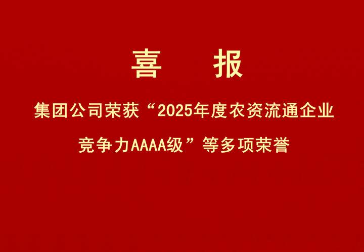 喜報|集團(tuán)公司榮獲“2025年度農(nóng)資流通企業(yè)競爭力AAAA級”等多項榮譽(yù)